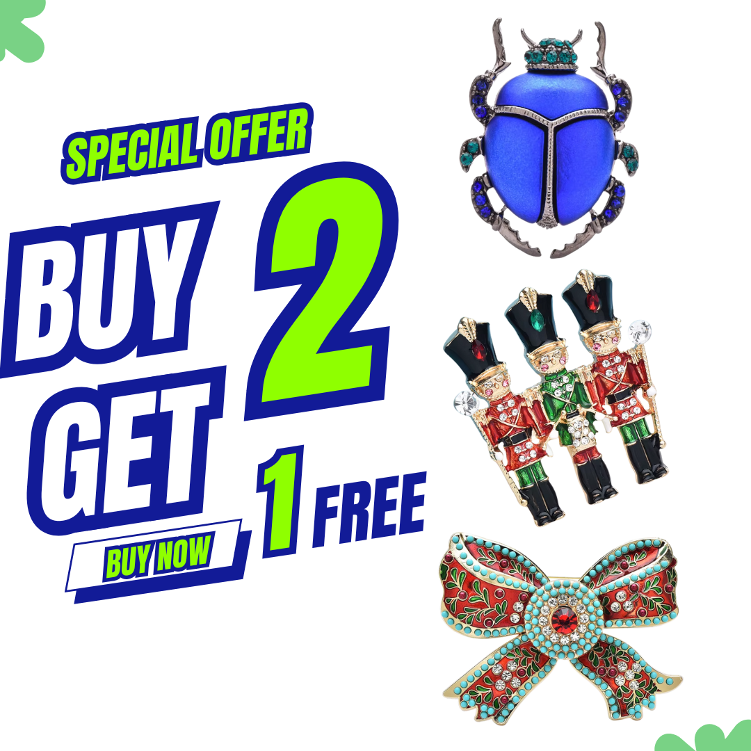 Buy 2 brooches and get 1 FREE—automatically. No coupon, no codes, no stress. Just add your favorites to the cart and let the savings (and sparkle) kick in. 🎁